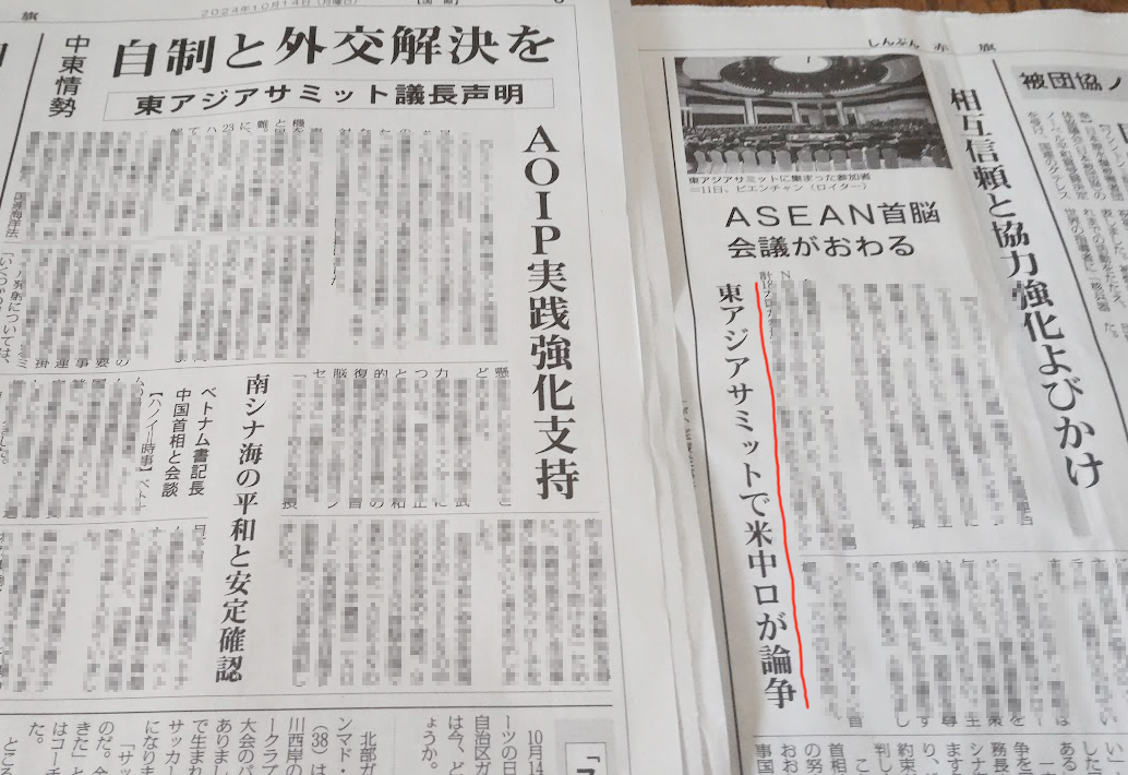 ところで、この東アジアサミットが2024年10月11日に開かれ、13日に議長声明が出ていたことをみなさん(特に共産党員や、共産党の予定候補や地方議員の方々)、ご存知だったでしょうか?